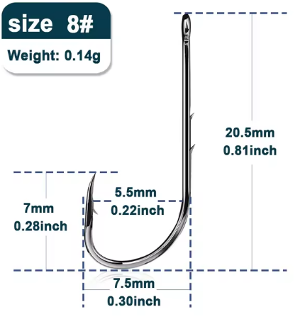 Estos anzuelos de tamaño N8 y 10 son ideales para una variedad de técnicas de pesca.
