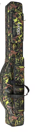 La bolsa para cañas de 130 cm en color camuflaje es una opción ideal para pescadores que buscan una solución práctica y segura para el transporte de sus cañas.